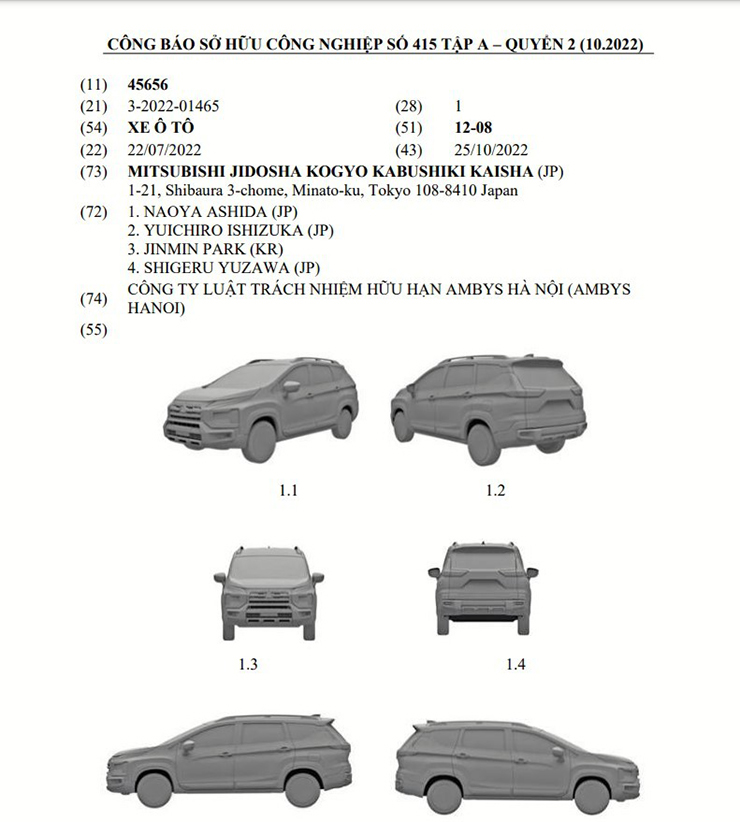 rên một số trang xuất hiện hình ảnh chiếc Xpander Cross phiên bản nâng cấp vừa được đăng ký bảo hộ kiểu dáng tại Việt Nam.